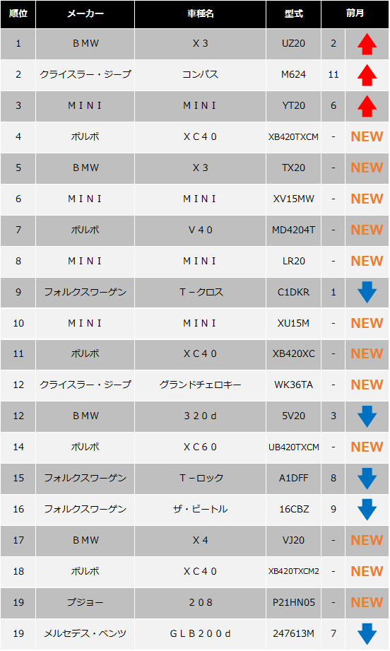 8月の鑑定台数は、62,462台となりました。 以下、国産車と輸入車別のトップ20を発表します。