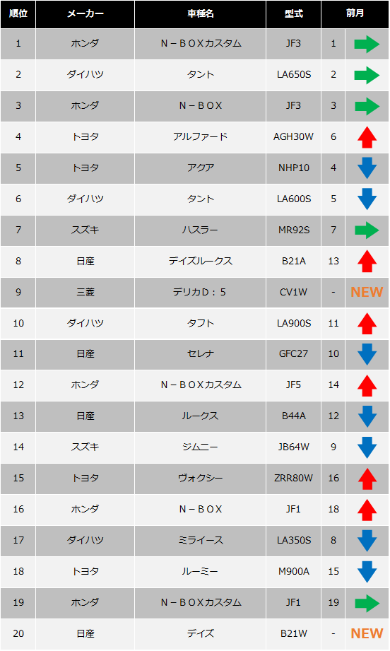 2025年7月 鑑定78,860台/車種別鑑定台数トップ20発表