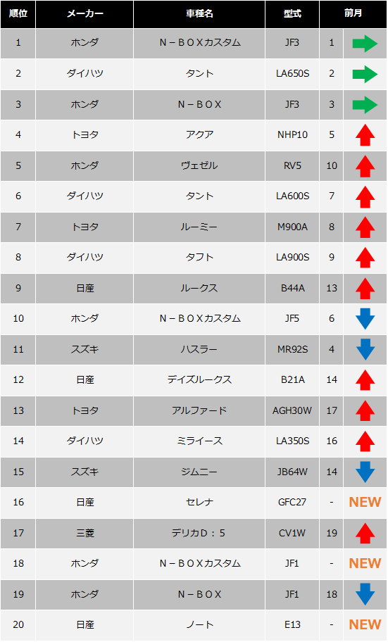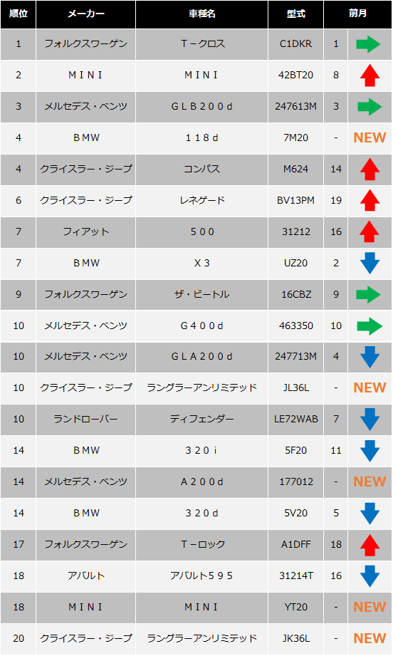 以下、国産車と輸入車別のトップ20を発表します。